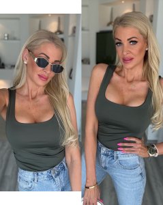 Bordázott anyag, amely elasztikus. Lepke ujjú, amelynek a különlegessége, hogy viselhető ejtett vállal vagy normál fazonban.