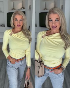 A Nőies elegancia és a modern kényelem tökéletes találkozása. Letisztult szabásvonalát a vállrészen elhelyezett különleges, arany színű dísz elem teszi igazán egyedivé. Finoman ráncolt nyakkivágása és testhez simuló fazonja kiemeli az alakot.