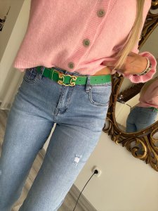 Az elején végigfutó díszvarrás optikailag nyújtja a lábakat és karcsúsító hatást kelt. A boka fölé érő, szűkülő fazon sportos és nőies megjelenést ad, amely tökéletesen kombinálható sportcipővel, magassarkúval vagy akár blézerrel is. Az elasztikus derékrész kényelmes viseletet biztosít a mindennapokban.
