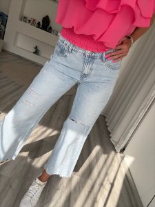 Az elején végigfutó díszvarrás optikailag nyújtja a lábakat és karcsúsító hatást kelt. A boka fölé érő, szűkülő fazon sportos és nőies megjelenést ad, amely tökéletesen kombinálható sportcipővel, magassarkúval vagy akár blézerrel is. Az elasztikus derékrész kényelmes viseletet biztosít a mindennapokban.