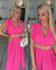 Na ez az a ruha, amelynél a kényelem, nőiesség és a praktikum találkozik. Felső része bővebb fazonú és az alsó szoknya része miatt lesz igazán nőies ez a darab. Ráncokat a has részénél az anyag, egyik lábánál pedig felvágott. Hátul nyak résznél gombos.